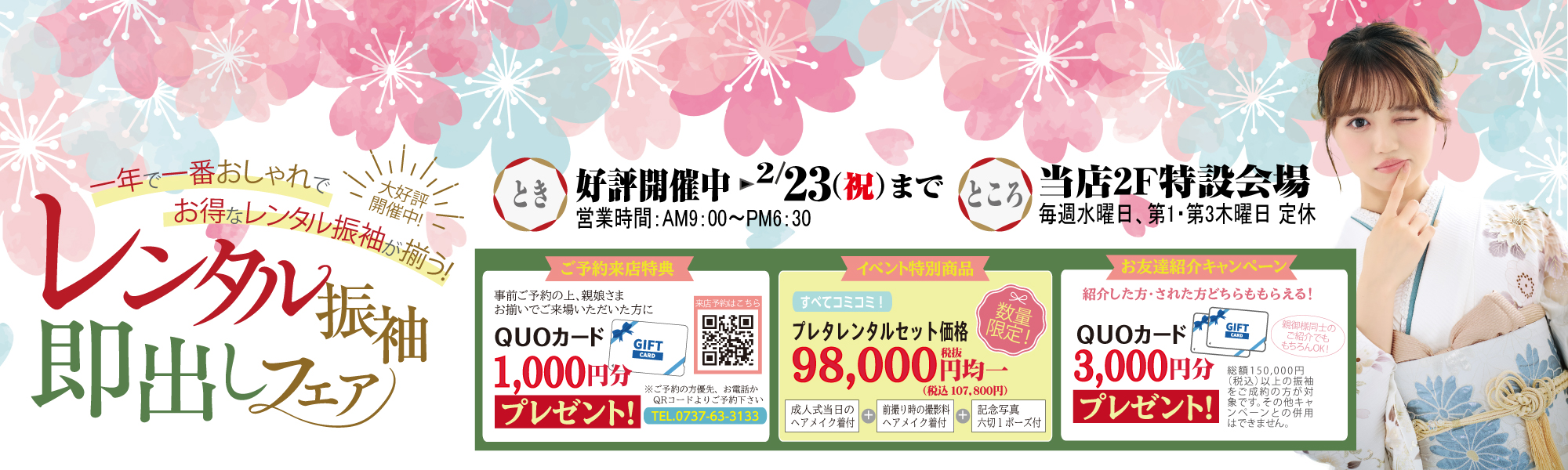 0737-63-3133(代)営業時間:AM9:00~PM7:00